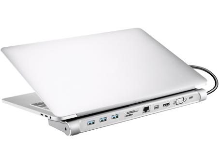 - Sicherheitssperre Die Docking-Station ist stilvoll aus Aluminium hergestellt und kann als praktischer Tischständer unter Ihrem Laptop verwendet werden.