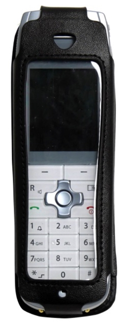Dank der Aussparungen an den Ecken kann das Handset schnell aus der Tasche genommen werden. Die Tasche kann über den rotierenden Klipp schnell und einfach an Gürteln oder Taschen befestigt werden und sich an Bewegungen des Trägers optimal anpassen.